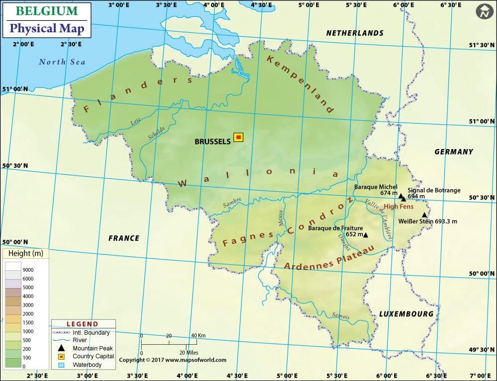Physical map of Belgium