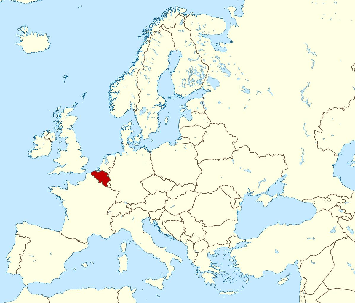 Map of Belgium location. Belgium map location (Western Europe - Europe) to print. Belgium map location (Western Europe - Europe) to download. Belgium is a nation located in Western Europe. It is between the Netherlands to the north, Germany and Luxembourg to the east, France to the south, and the North Sea to the west. Belgium is about the size of Maryland, has an area of 30,510 square kilometers (11,780 square miles) and includes 280 square kilometers (108 square miles) of inland waterways. It has 66 kilometers (41 miles) of coastline and its borders total 1,385 kilometers (861 miles). Belgium shares 620 kilometers (385 miles) with France, 167 kilometers (103 miles) with Germany, 148 kilometers (92 miles) with Luxembourg, and 450 kilometers (280 miles) with the Netherlands as its shown in Belgium map location. The nation also claims an exclusive fishing zone that extends 68 kilometers (42 miles) into the North Sea. Belgium is the traditional crossroads of Europe and its capital, Brussels, also serves as the capital of the European Union (EU).